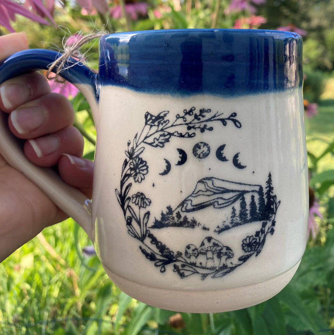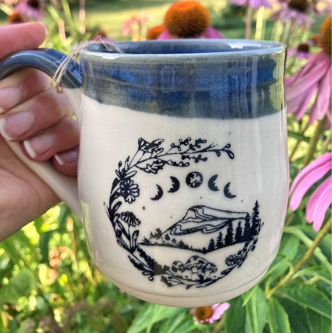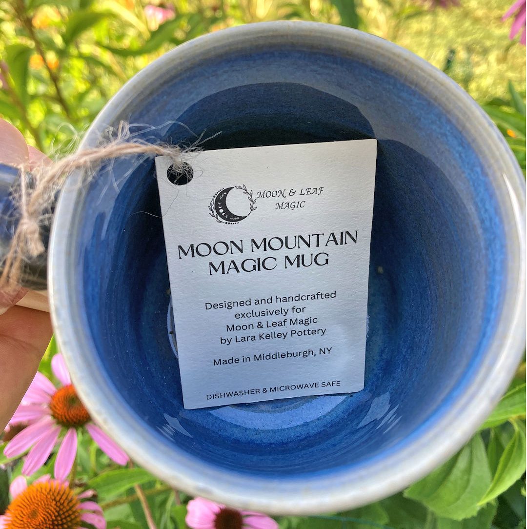 Designed and hand-crafted in Middleburgh, NY exclusively for Moon & Leaf Magic by Lara Kelley Pottery, this stunningly enchanted mug is perfect for your daily cup of tea (or coffee, hot chocolate, etc…)